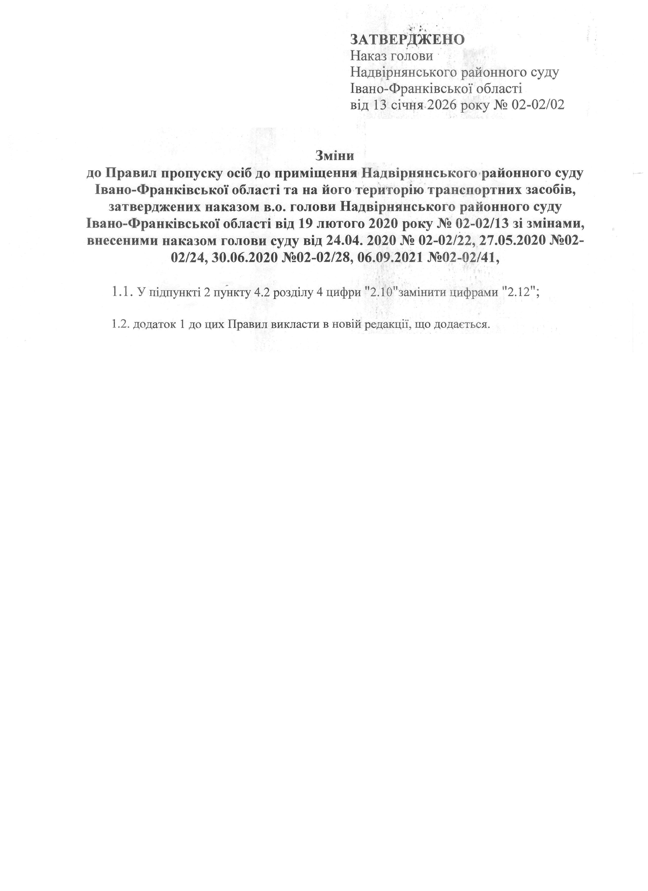 Правила пропуску осіб до приміщення Надвірнянського районного суду Івано-Франківської області та на його територію транспортних засобів